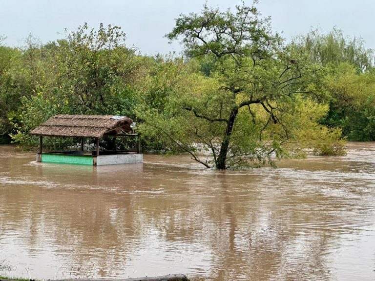 El caudal de agua es abundante y colocaron bandeja roja. El nivel de creciente se elevó incluso a sectores altos.