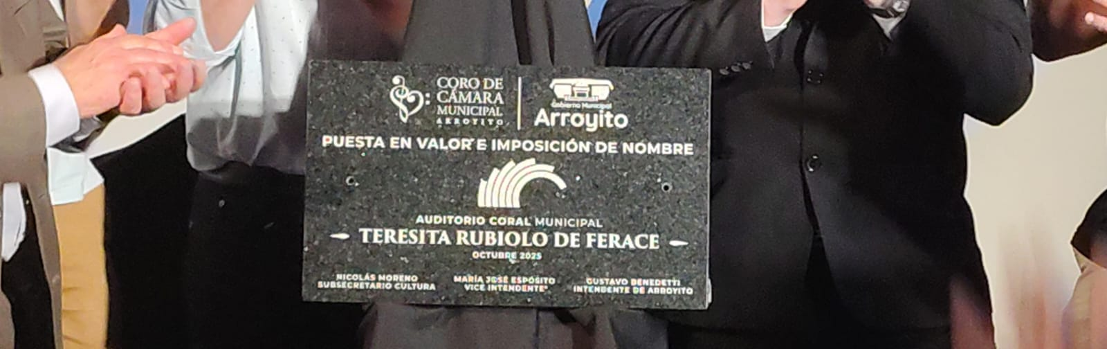 Durante la noche del jueves 23 de octubre, el municipio de Arroyito junto a la comunidad puso en valor el Auditorio Coral Municipal, homenajeando a Teresita Rubiolo de Ferace.