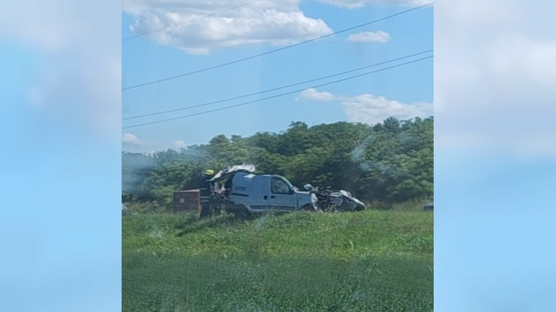 El parte de prensa policial indica que fue a raíz de un violento choque frontal entre un camión Iveco 170 y un vehículo utilitario, marca Renault Kangoo, en el kilómetro 72 de la Ruta Provincial N° 1.