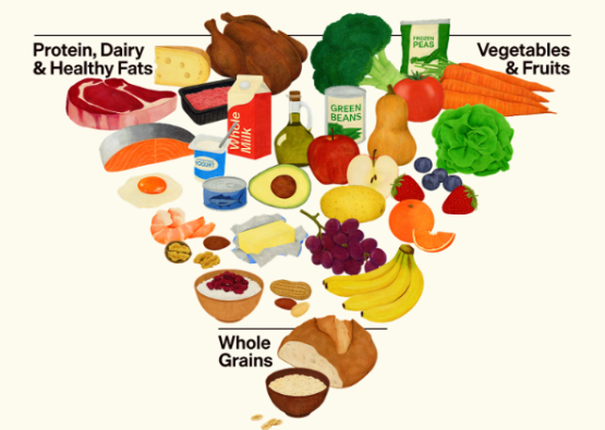 Se trata de un documento recomienda una dieta fundamentada en alimentos integrales y proteínas, así como reducir al mínimo los alimentos ultraprocesados, los azúcares añadidos y los carbohidratos refinados.