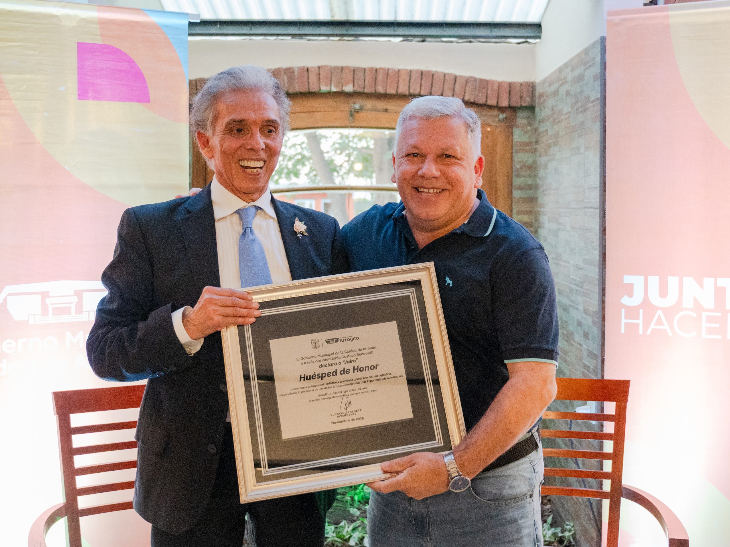 “Gracias a la generosidad de dos vecinos arroyitenses, que vivieron un momento especial en sus vidas y nos invitaron a compartirlo, permitiendo que como ciudad pudiéramos reconocer al artista mientras se encuentra en nuestra comunidad”, afirmaron desde el área de prensa municipal.