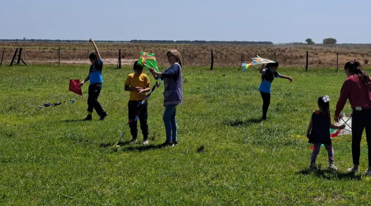 Hubo juegos de escucha y compañerismo, una búsqueda del tesoro en equipos y el armado de barriletes junto a padres e hijos.